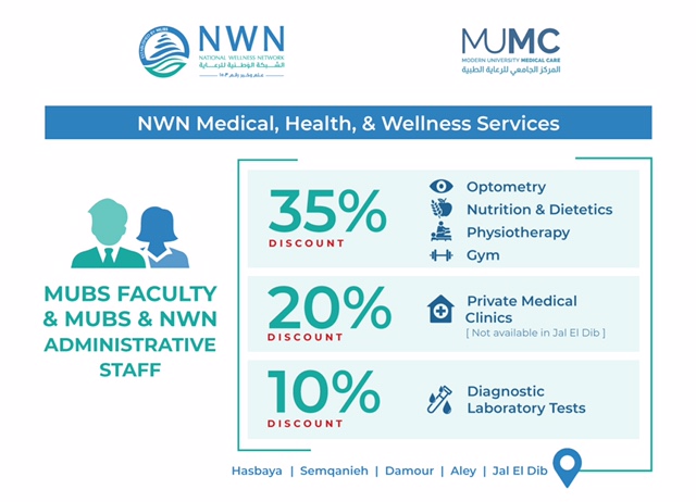 The University Wellness Network (NWN) is an organization established by the Modern University for Business & Science (MUBS) with an objective to empower individuals to adopt and maintain healthy lifestyle behaviors.